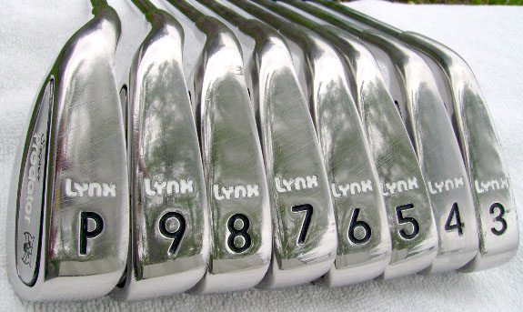 | Serial number matched left-handed low profile irons - the best of the Predator designs. Polished heads with minor front of sole nicking and sole scratching. Fine Lynx Regular flex steel shafts with good bands. New grips. 5 iron 37 1/2". |