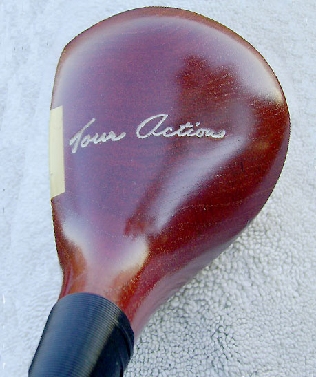 Great block of wood without a scratch. Soleplate with poly wear. Like-new whipping, TT S300 stiff steel shaft with perfect band and excellent original Cleveland Classics logo rubber grip. 10 degree loft, square face, 43 1/2" length. |