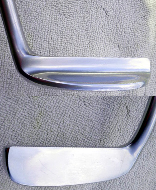 | Head looks unused. Beautiful chrome finish to this offset model. Like new stepped steel shaft. Very fine Golf Pride wrap pistol grip. This putter is essentially new. 34 1/2" |